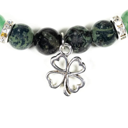 Armband Kambaba Jaspis & Aventurin mit Anhänger Kleeblatt